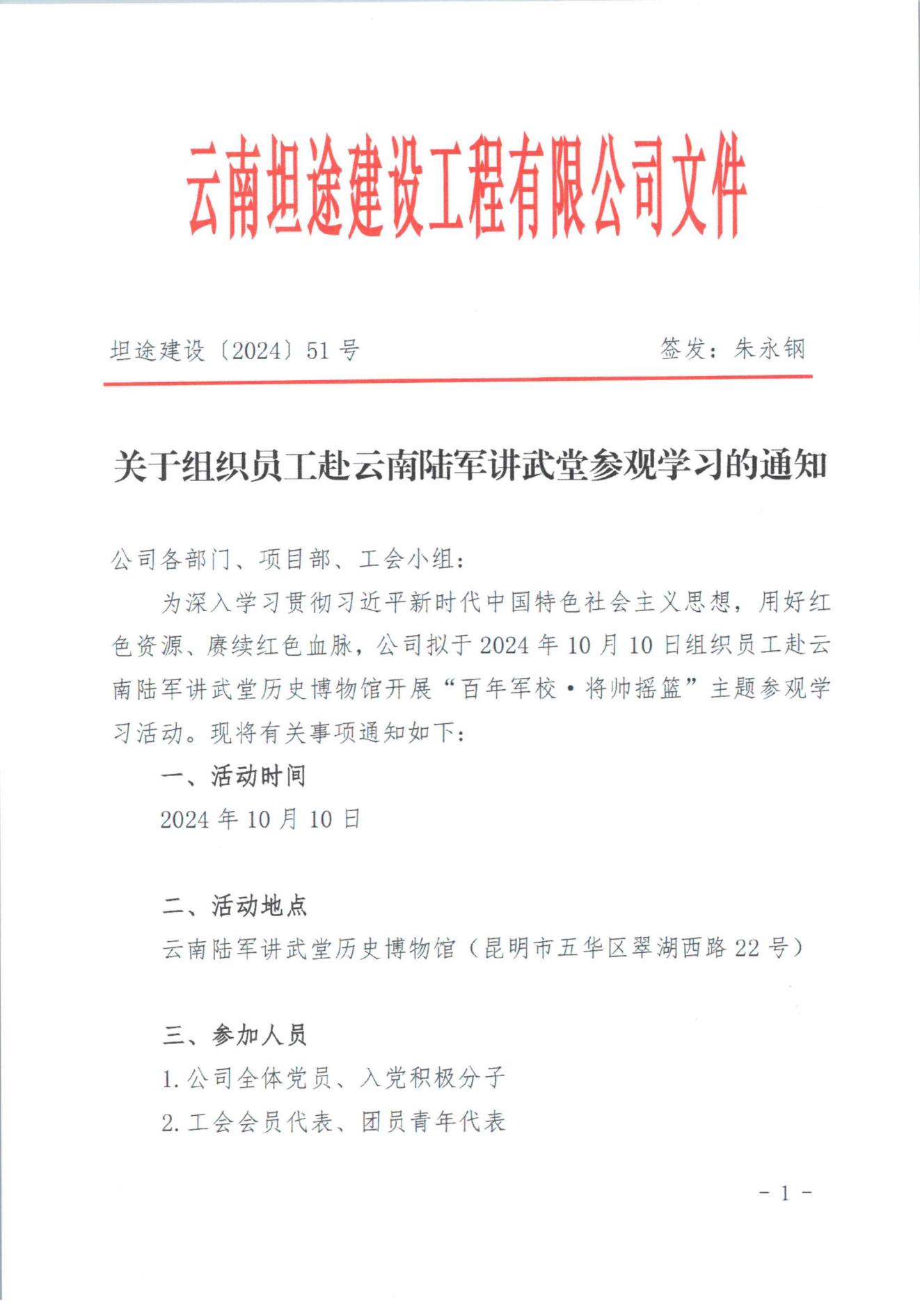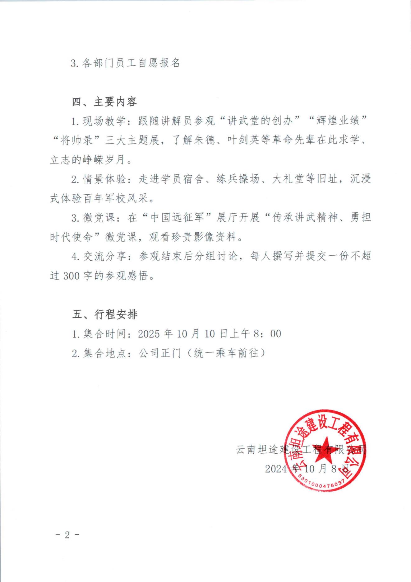 关于组织员工赴云南陆军讲武堂开展参观学习活动