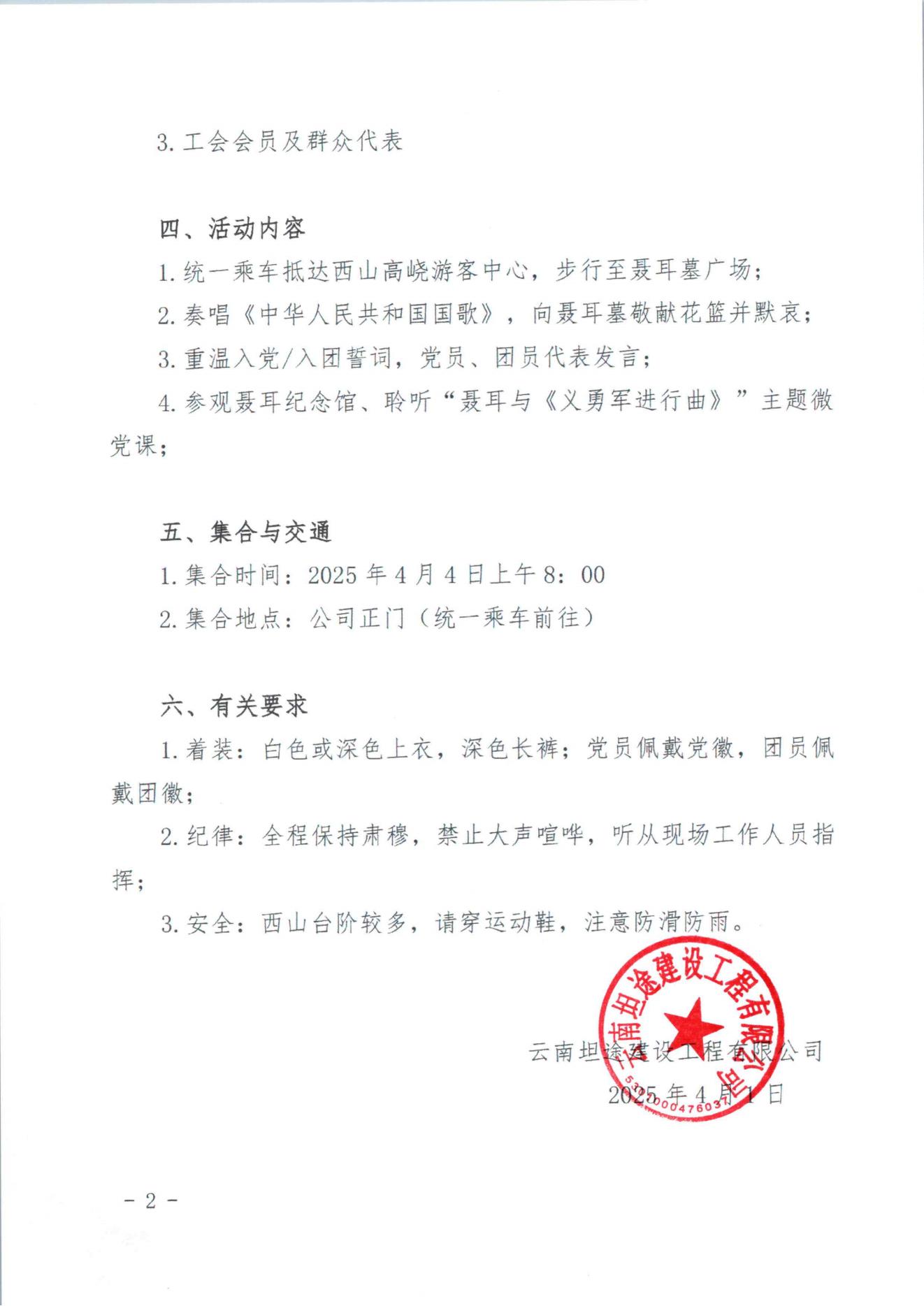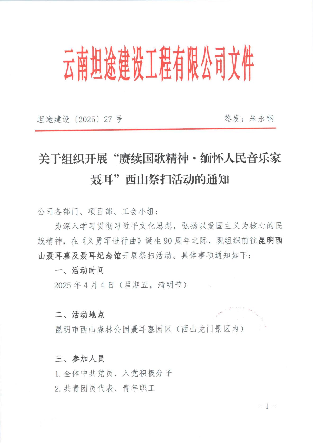 关于组织开展“赓续国歌精神·缅怀人民音乐家聂耳”西山祭扫活动的通知