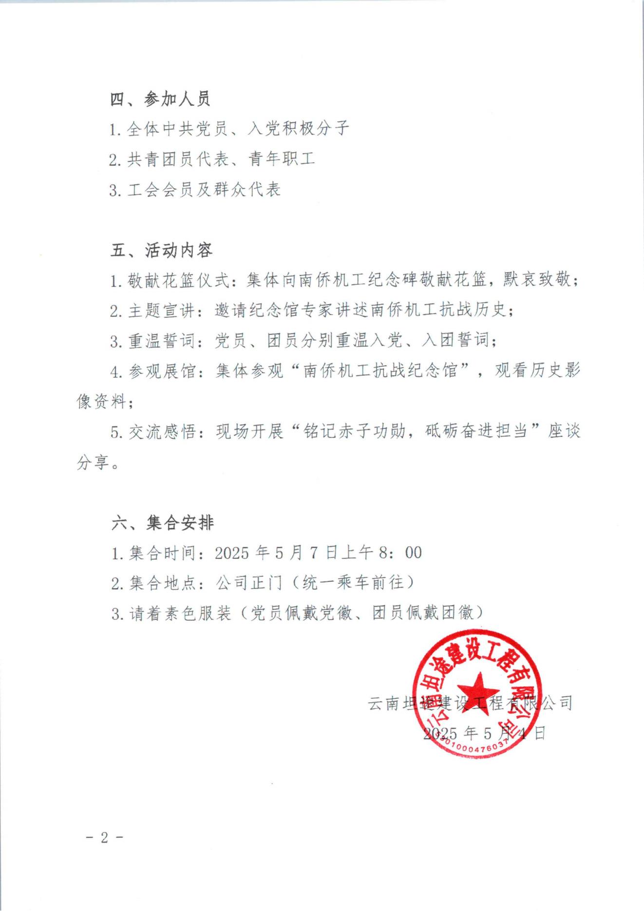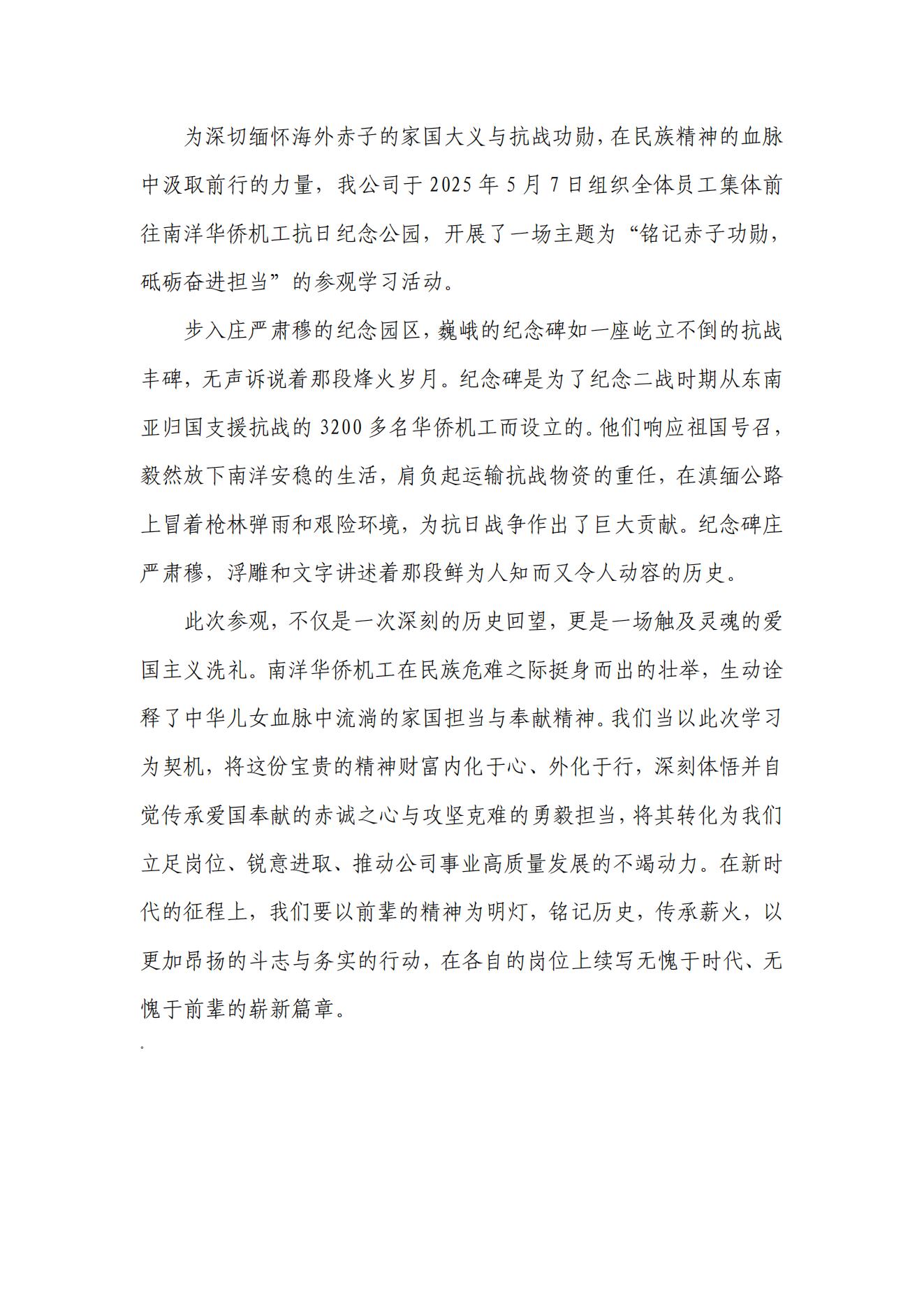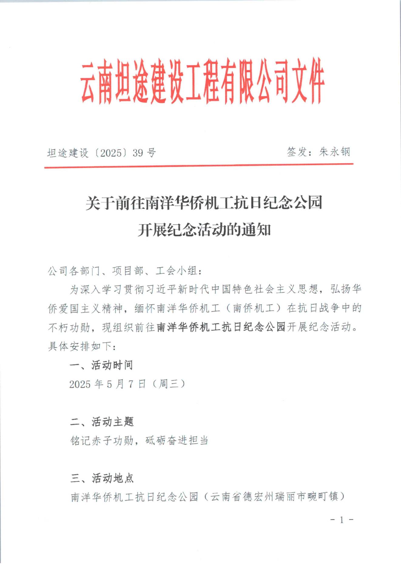 关于前往南洋华侨机工抗日纪念公园开展纪念活动的通知